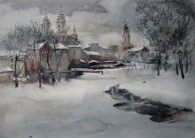 March Morning. Birch Trees. Pereslavl-Zalessky - oil, cardboard
