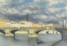 Venice. Foggy Day - watercolors, lacquer, white paint, paper