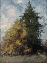 Fir And Rowan - oil, cardboard by Derevianko Vyacheslav / landscape