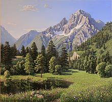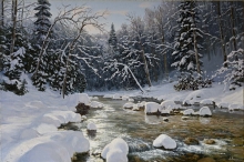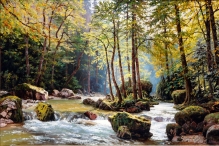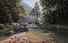 Coolness Of A Mountain River - oil, canvas