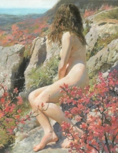Nude In A Romantic Spring Landscape - oil, canvas