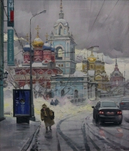 Trinity Church In Serebrenniki - carton, pastel, gouache, acrylic