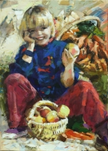 Boy With Apples - oil, canvas