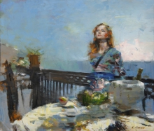 On The Balcony - oil, canvas