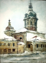 Moscow. Zhdanov Street. Temple On Rozhestvenka - oil, canvas
