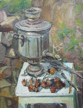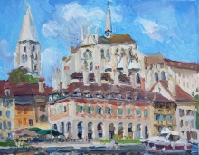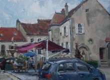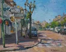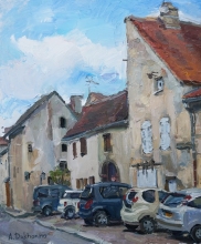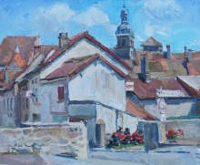 I paint city and village, forest and architecture, still lives and people surrounding me.