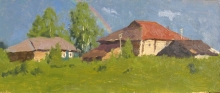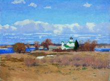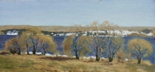 The Velikaya River. Spring. Sketch - oil, cardboard