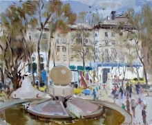 Sunny Day On Mayakovskiy Square - oil, canvas
