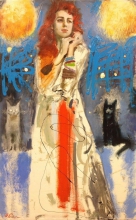 Dame In A Winter Landscape - toned paper, watercolors, white paint