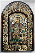 The Mother Of God Of "Tender Feeling" Serafimo-Diveevskaya - pine, cut out birch, oil, serpentine marble, amber